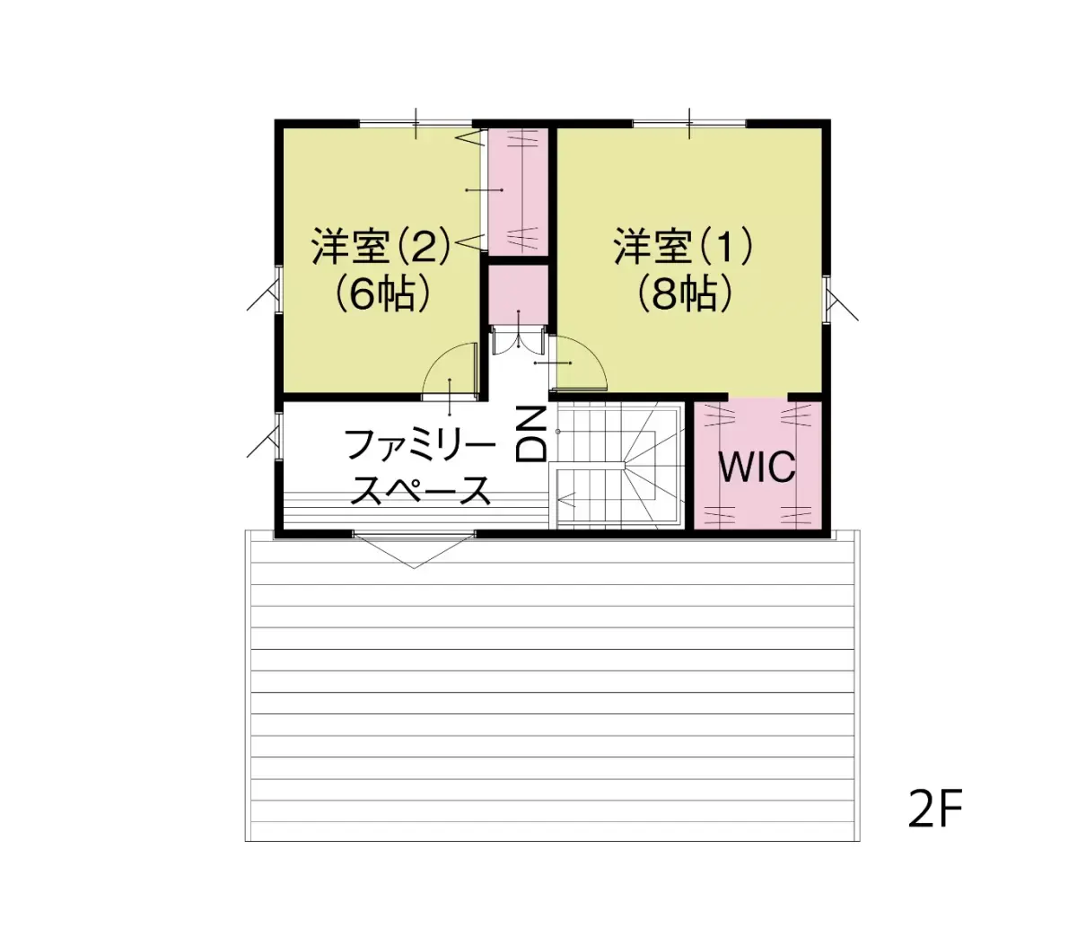 20帖のLDKと2階洋室10帖でゆったり広々な間取りが特徴。