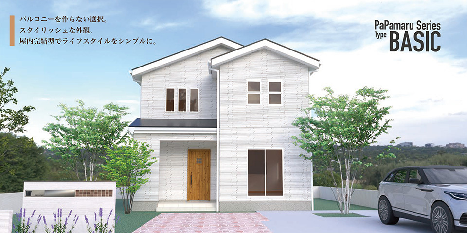 個性的な外観が目を引く、回遊動線が特徴のプラン