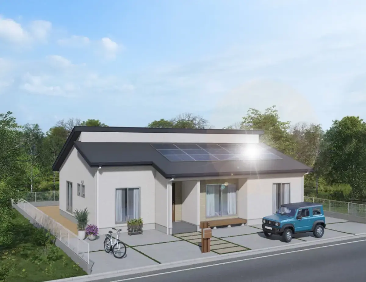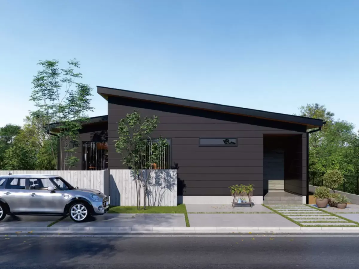 平屋生活にプラスαのご提案。大間口サッシが特徴的なプラン