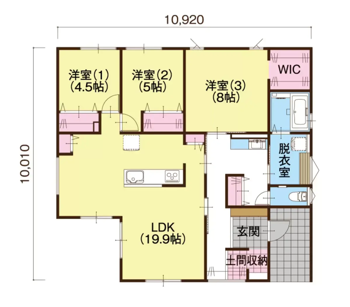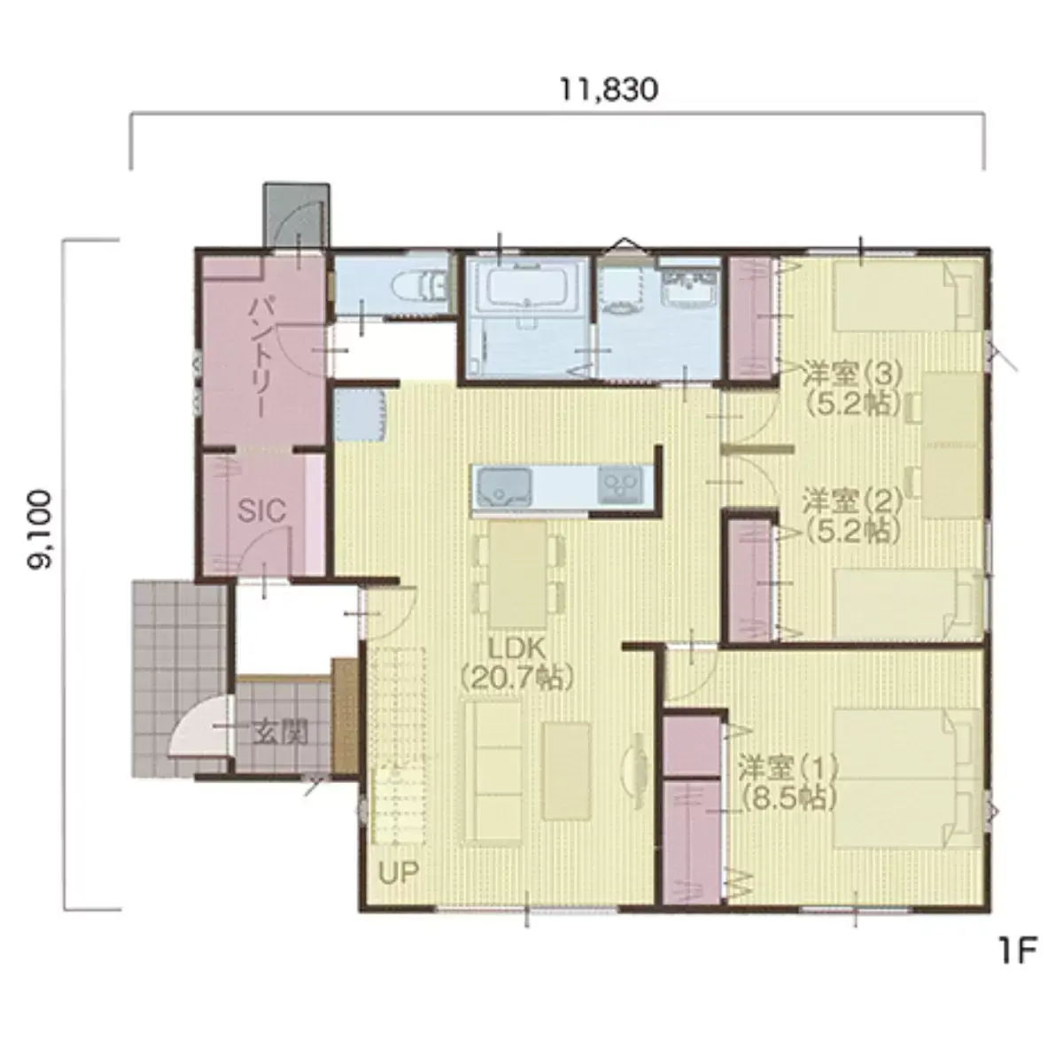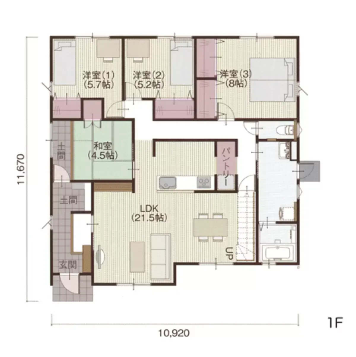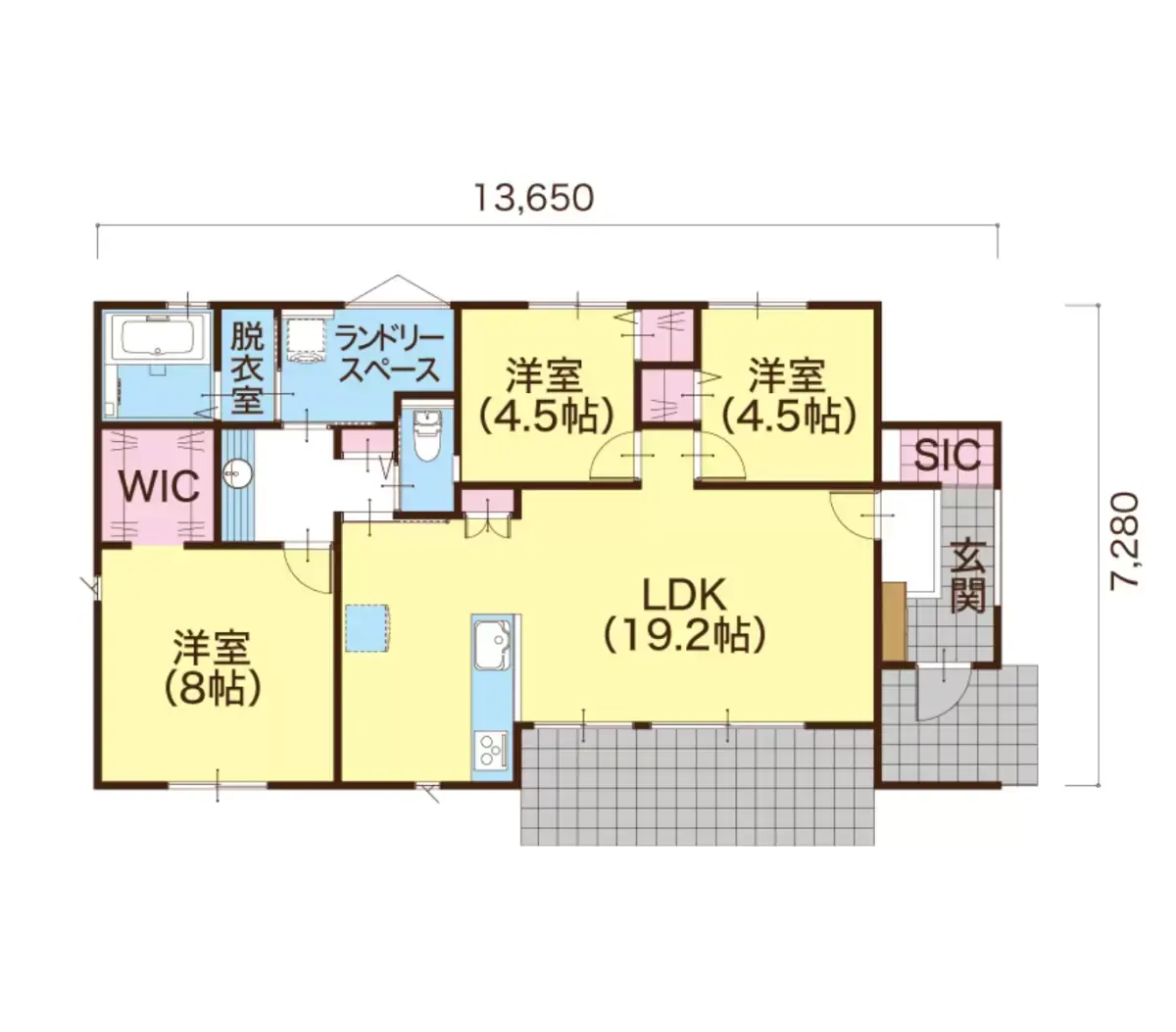 SICからパントリーへ動線の良さが人気のプラン。部屋数も充実。